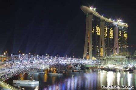 The Helix Bridge (螺旋桥)is a pedestrian bridge linking Marina Centre with Marina South in the Marina Bay. It was officially opened on April 24 2010 at 9 pm. It is located beside the Benjamin Sheares Bridge and is accompanied by a vehicular bridge, known as the Bayfront Bridge.